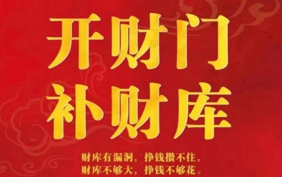 开阳库:人人都要打开阳中财库,有的人天天能赚到钱财,就是不知钱花到哪去了,天天赚钱就是没钱,这就是命中阳财库没打开或是太小。需要做法打开或补齐阳财库。该还的还,该闭的闭,该开的开。