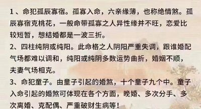 第二种是孤鸾煞,这种煞让夫妻感情冷淡,容易分居或离婚,两个人在一起总觉得孤单,沟通困难。